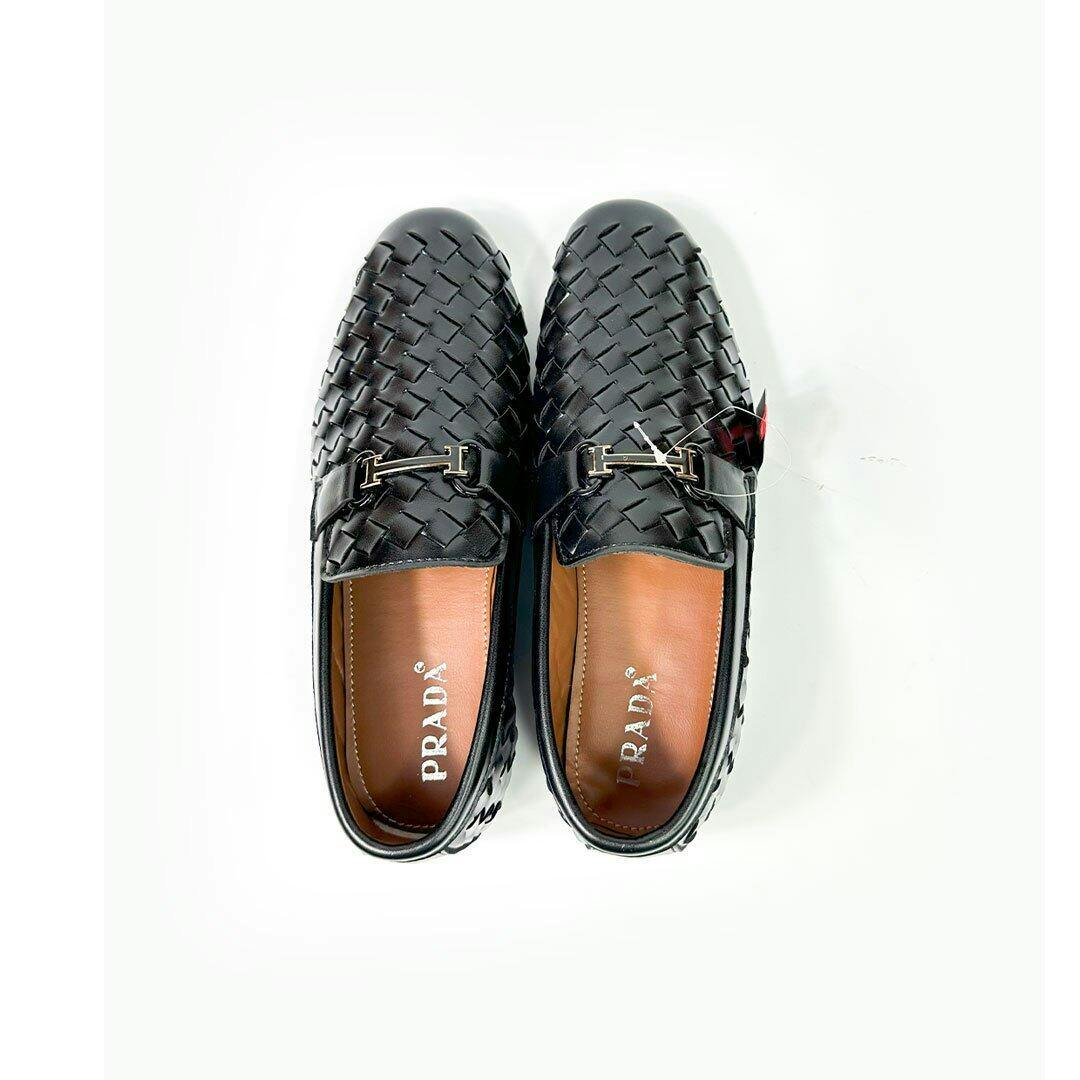 Woven Black Leather Loafer | Premium Quality | All Season Shoe